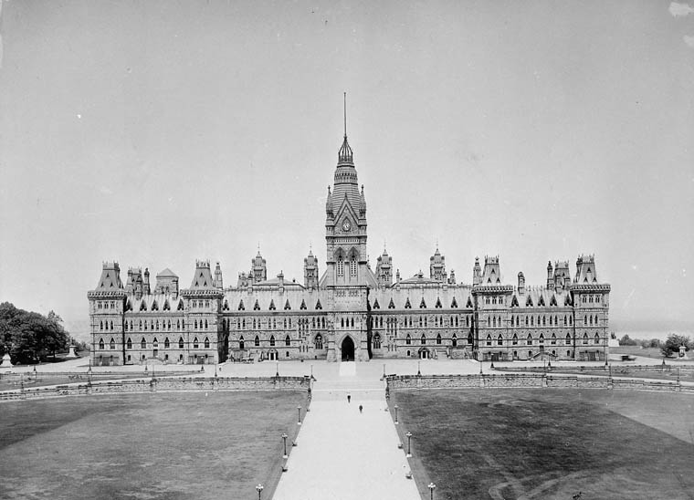 Em 1858, ano seguinte a definição de Ottawa como capital da província do Canadá, começam-se as obras de construção dos edifícios parlamentares e governamentais no que hoje é o Parliament Hill, ou Colina do Parlamento. Mais de 1600 pessoas trabalhariam nesse projeto.