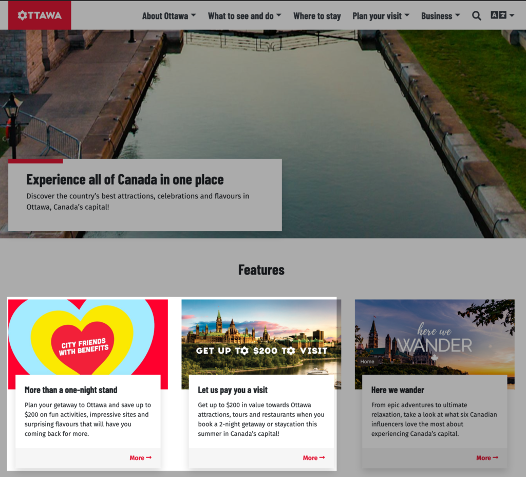 Para ficar hospedados em Ottawa, fizemos as reservas de hotel através do site de turismo do governo de Ottawa, o ottawatourism.ca.